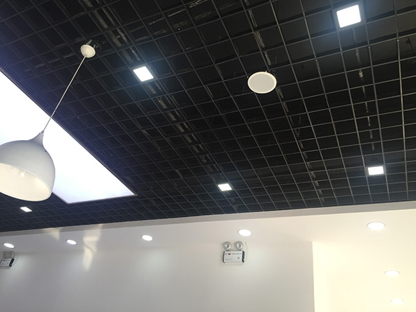 工程主要內(nèi)容:大廳輕鋼龍骨石膏板吊頂;背景墻細木板打底木紋板面層飾面;地面鋪設(shè)瓷磚;體驗區(qū)平臺;頂棚燈箱;套裝門及強弱電等項目。
